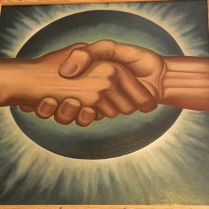 | One of two small flanking panels that form a triptych with "Justice Tempered With Mercy" |