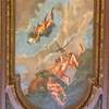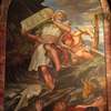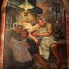 | This mural was painted for the dining room at Ellis Island. It was severely damaged in the 1950s when a storm blew the roof off of the building. Pieces of it have been restored and hung in the Brooklyn courthouse. |